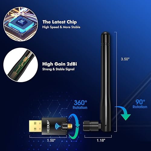 【Powerful Signal Coverage】: EDUP BE6500M WiFi Adapter features dual antennas that provide robust signal enhancement, extending the range and stability of your wireless connection for a more reliable and uninterrupted experience. Whether you're participating in real-time meetings, streaming your favorite shows, or playing games, you can enjoy seamless connectivity without any interference.
