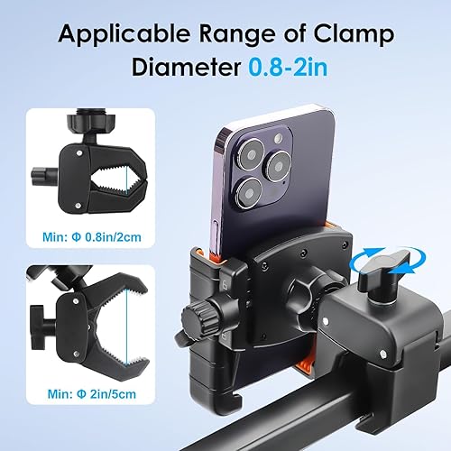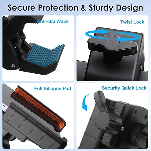 Upgraded Strong and Stable Clamp: The twist-lock clamp with anti-slip silicone padding ensures a tight grip without tools. It keeps your phone stable even on rough paths, preventing drops, scratches, or wobbling during use