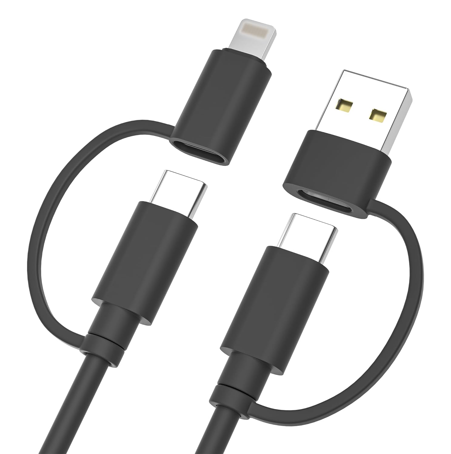 (4-in-1 Multi-Functional Design)This 4-in-1 USB C multi charging cable supports USB C to USB C,USB C to Light-ning,USB A to Light-ning,USB A to USB C interfaces, allowing one cable to charge multiple devices and reduce cable clutter.