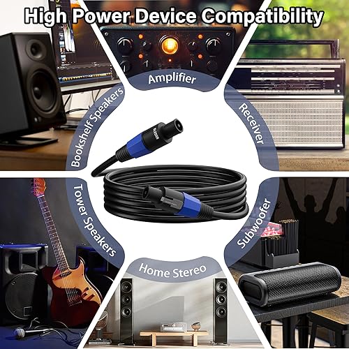 Warm Reminder: Please note that this Speakon cable is compatible with audio equipment featuring NL4FC Speakon ports, such as stage speakers, subwoofers, and amplifiers. It is not suitable for connecting to televisions----For the best performance, ensure the cable is connected to devices that support NL4FC ports----Always check the locking mechanism of the connection ports to avoid loose or interrupted connections due to improper handling----To clean, simply wipe the cable with a damp cloth if it gets dirty