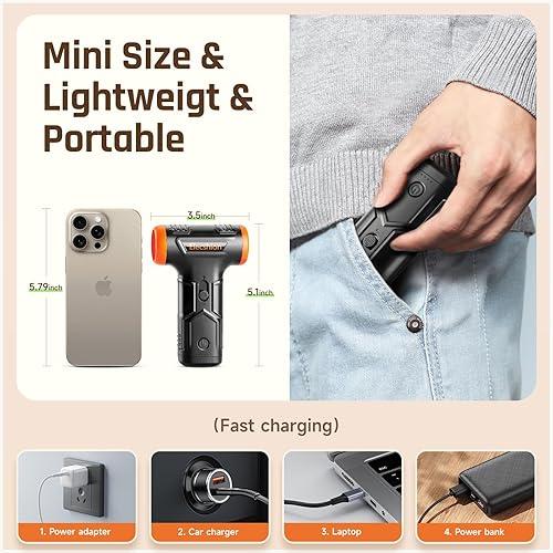 Cordless Air Duster Enjoy Freedom: Experience ultimate convenience with our cordless blower; which provides unrestricted movement and flexibility. Ideal for a variety of cleaning tasks; whether at home; in the car; or outdoors; without the hassle of tangled cords.