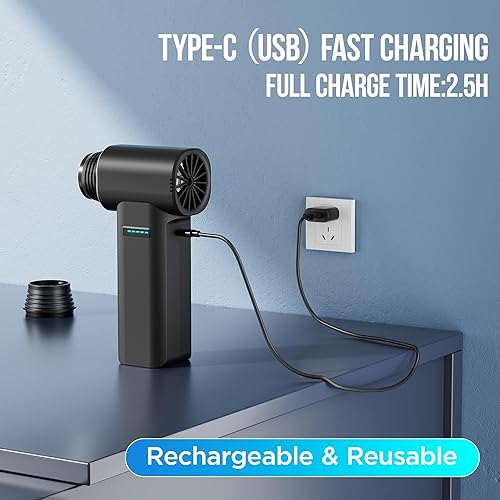 【Rechargeable Design】: Reusable, compared to ordinary compressed air tanks, it has a longer service life and can be charged with only a TypeC charging cable, with greater wind power than compressed air tanks.