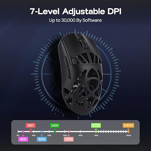 Unmatched Sensitivity: At its core is the cutting-edge PAW3950 sensor—with DPI from 400 to 30,000, split into 7 calibrated stages—designed to adapt to your gaming style. In first-person shooters, dial down to 400 DPI for steady, precise aiming: every wrist movement translates to smooth, accurate crosshair control, turning near-misses into one-shot kills. For strategy games, crank up to 30,000 DPI and zip through maps, select units, and issue commands with lightning speed. The 7 stages in between? Perfect for in-between moments, like 8000 DPI for swift menu navigation without losing skirmish precision.
