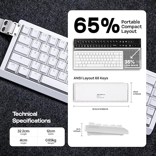8,000 Hz Polling and 128,000 Scan Rate: Level up your gaming performance with smoother, more precise control, with the HE68 Lite magnetic gaming keyboard. Experience near-instantaneous key registration of 8khz polling rate, translating your commands into on-screen actions with unparalleled speed in 0.125 millisecond. Outmaneuver opponents and execute complex strategies flawlessly, with the super high 128khz per-key scan rate where even rapid-fire sequences are accurately captured.