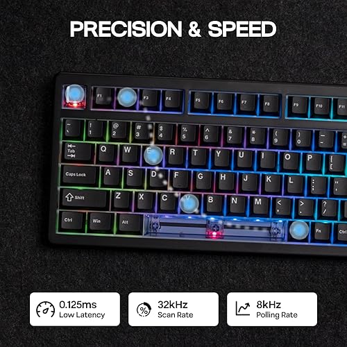 8000 Polling & 32000 Scan Rate: Featuring top-tier chips and well-tuned magnetic switch, the HE80 magnetic keyboard promises 8k Hz polling with 32K scan rate and 128K single key scans (125 to 8k adjustable). As hall effect switches trigger without physical contact between switch and PCB, the latency is significantly reduced to a mere 0.125ms, 8x quicker than conventional 1k polling keyboard.