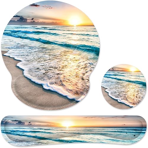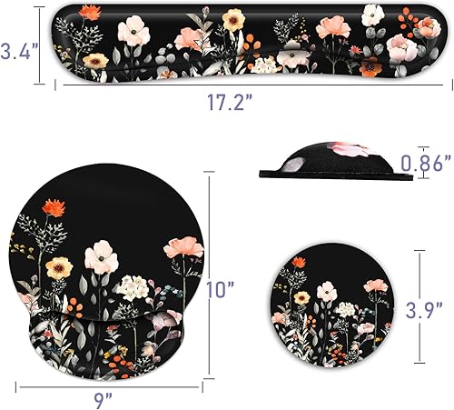 Optimal Size: The mouse pad with wrist support (9'' x 9.8 inch) and wrist support for keyboard (16.9'' x 3.5 inch) , coasters (3.9" x 3.9"), fits most mouse and keyboard. Perfect for Computer, Laptop, Mac