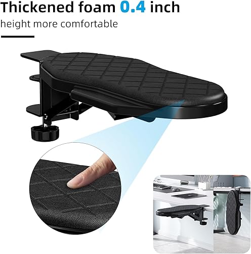 Desktop armrest support: desk corner extender can be adapted to the thickness of up to 2.5 inches of desktop, suitable for most tables. Relieves shoulder pain caused by sagging elbows, supports arms and reduces wrist pressure.