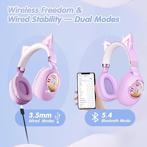 Comment on "esonstyle Kids Headphones Cat Ear - Bluetooth 5.4 Over-Ear Noise Cancelling Headphones with Microphone LED Lights Up 85dB Safe Volume Limit Wireless or 3.5mm Wired USB C(Pink Blue)(Purple)"