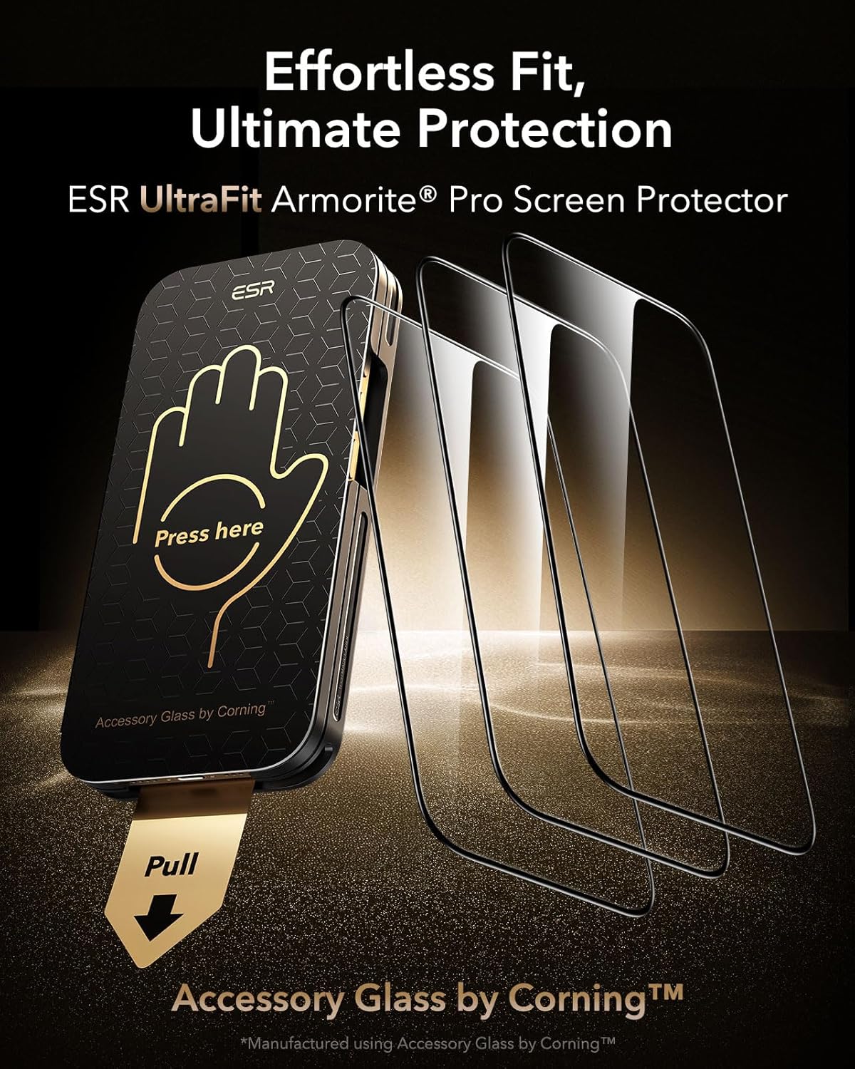 ESR Accessory Glass by Corning™ 3 Pack 9H+ Glass for iPhone 17 Pro Max Screen Protector, Military Grade Shatterproof & Durable with UltraFit Tray(3 Pack,iPhone 16 Pro Max)
