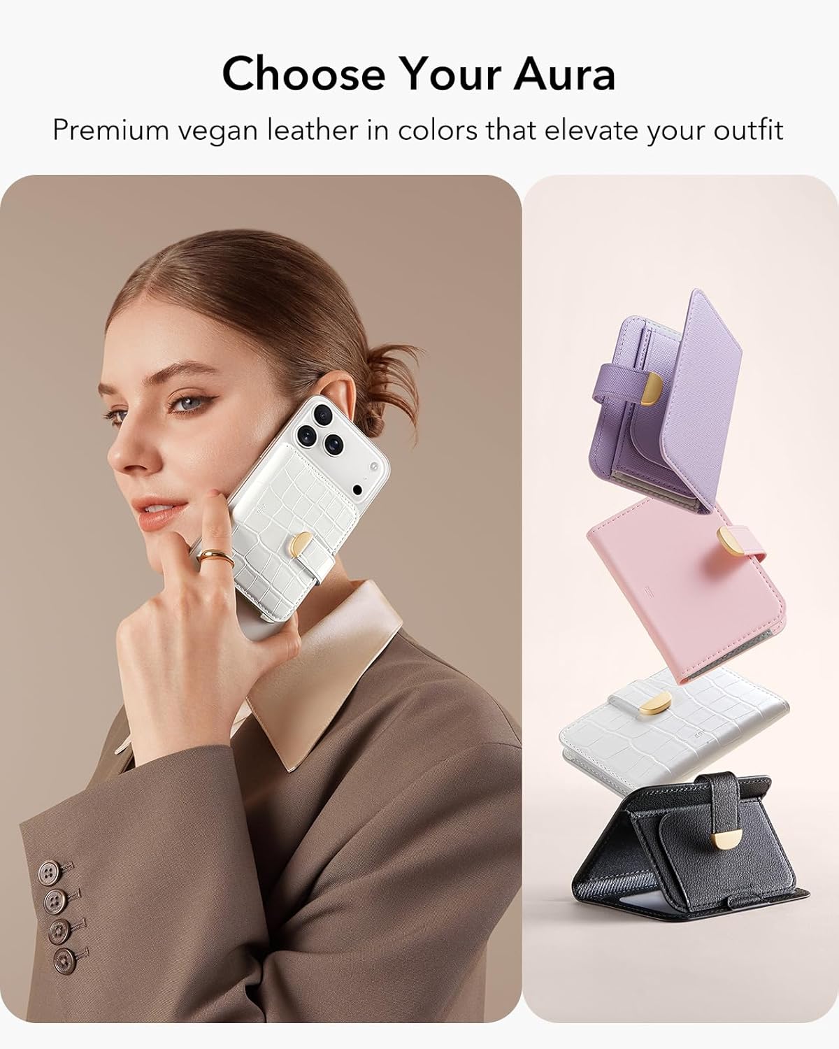 Comment on "ESR Aura Clutch for MagSafe Wallet for Women, 5-Card Holder, RFID Blocking, MagSafe Sticker Included, Magnetic Wallet for iPhone 17/16/15/14/13/12 Series (not mini) and Select Samsung Devices, Pink(Aura Clutch-Pearl White Croc)"