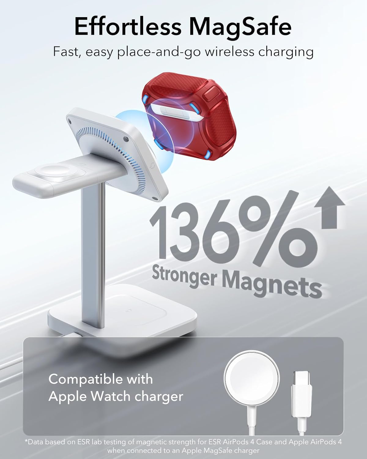 MagSafe Ready: strong magnets with a 260 g holding force built into the back of the case ensure a secure lock on MagSafe chargers, letting you enjoy tap-and-go wireless charging for your earbuds