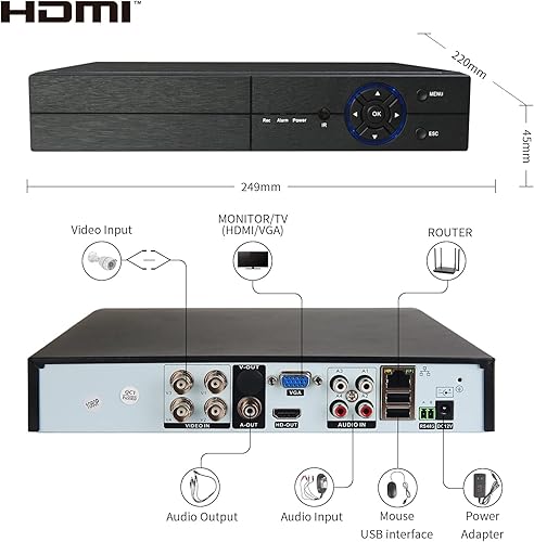 Eversecu 4Ch Home Security Camera System, 1080P DVR & 4pcs HD Weatherproof Cameras, Night Vision, Motion Alert, Remote Access, Power adapters & Premade Cables Included, No Hard Driver(Without HDD)