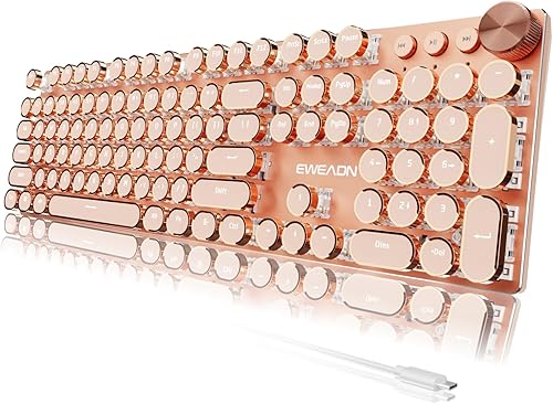 【Retro Typewriter Mechanical Keyboard】:The typewriter gaming keyboard has mechanical custom pink switches that feature a smooth linear feeling, and low resistance without a tactile bump feel. round keycaps of the punk mechanical keyboard look like a classical typewriter.keycaps have a matte texture and upgraded touch feel and the sound is quiet when the button is pressed lightly giving you a comfortable typing feeling and a stable click touch.