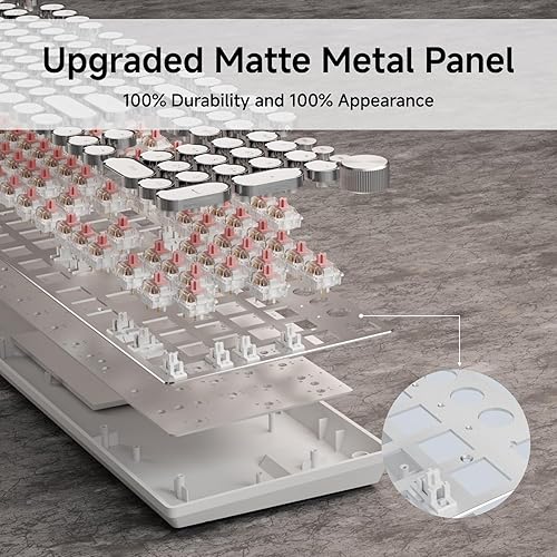 【Metal Panel and Electroplated Punk Keycaps】:The typewriter gaming keyboard panel is made of top-grade aluminium alloy, with a metallic matte texture, sturdy and robust enough to protect it from scratch. The floating keycaps are carefully crafted using metal plating technology, with a unique monochromatic light that instantly makes your keyboard look stunning, and enhances the feeling of the wired backlit keyboard.