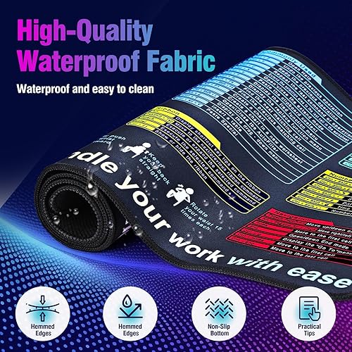 Excel Cheat Sheet Desk Pad Mat (11.8x31.5in) - XL Excel Formulas Shotcuts Mouse Pad Cheat Sheet Excel Function Modules & Waterproof | 3mm Non-Slip Pc Keyboard Cover | Office/Gaming Large XL Mouse Pad