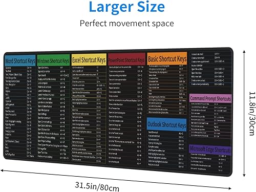 Large And Perfect Size: Measuring 800x300x3mm (31.5x11.8x0.13 Inches), This Excel&Word Cheat Sheet Mouse Pad Covers The Area For A Laptop And Mouse, Providing Ample Space For All Your Computing Needs.