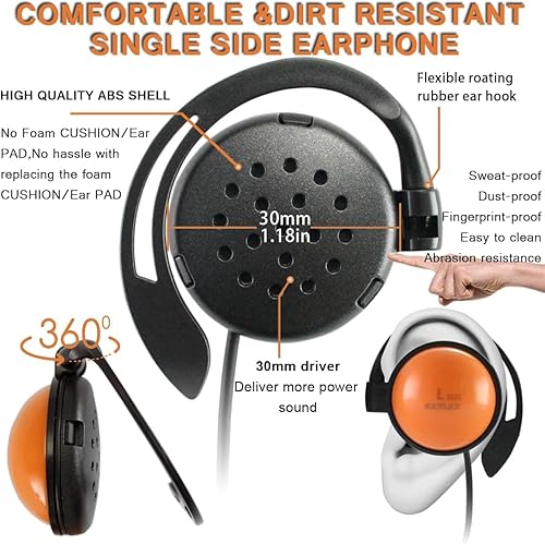 EXMAX SE-55 Foamless Wired Single Headphone 3.5mm Ear-Hook Headphone Big Large Speaker Style for EXD-101 EX-200N ELGT-470 Wireless Tour Guide Receiver Podcast Laptop (Right-Side Earphone, 5 Pack)(Left-Side Earphone,100 Pack)