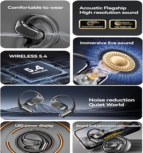 【Noise Cancelling Technology】: This Ai Translation Wireless Ows Bluetooth5.4 Earphones can immerse yourself in your surroundings while enjoying crystal clear sound quality. Our noise canceling feature helps filter out unwanted background noise for great clarity