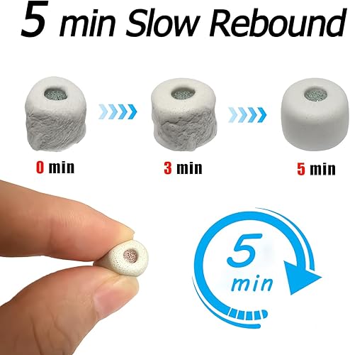 Slow-rebound acoustic foam tips with dust filters deliver clear sound, great as travel ear tips or workout earbud tips, offering all-day comfort and noise isolation.