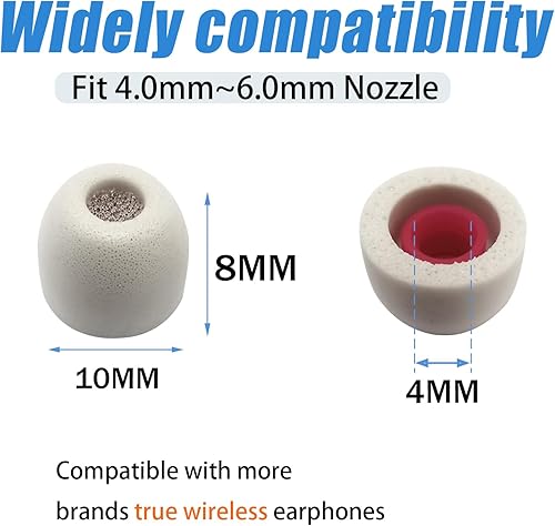 4.0mm core fits most brands earbuds, compact 8mm height works with charging cases - ideal TWS ear tips.