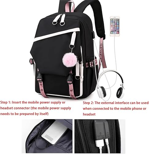 USB PORT DESIGN: The backpack has a usb port and comes with a usb adapter cable, allowing you to connect your own mobile charging treasure. Charge anytime, anywhere.,this usb backpack offers you a more convenient way to charge your phone while walking.There is a headphone port design next to the USB port, allowing you to enjoy beautiful music anytime, anywhere.Please noted that this backpack doesn't power itself, usb charging port only offers an easy access to charge