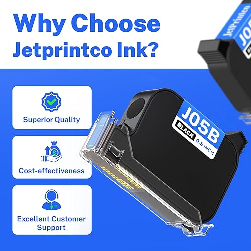 Ink Compatibility: The J05B black cartridge is a solvent-based ink with a 12.7mm (0.5 inch) print height and 42ml capacity. Specifically designed for compatibility with the Jetprintco JC01 handheld inkjet printer.