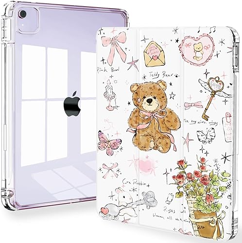 Feams for iPad Air 13 Inch Case M3 2025/M2 2024, Slim iPad Pro 12.9 Inch 6th/5th/4th Generation 2022/2021/2020 Case Clear Back Cover with Auto Sleep & Pencil Holder, Cute Girls' Daily(Line Art)