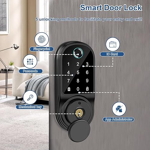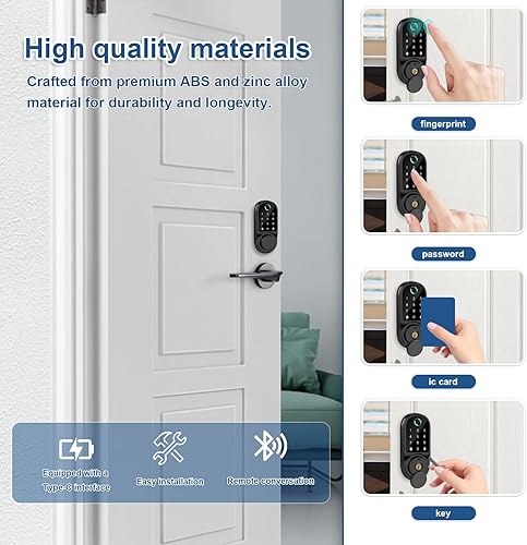 5 Unlocking Methods for Flexibility – Unlock via APP control ( iOS/ Android ), 100- store fingerprint sensor ( scan< 1s ), 100- code password, IC card, or mechanical key – perfect for families, rentals, or offices. Ideal for keyless entry, rental hosts, and smart home security