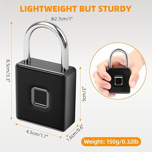 Long-lasting USB Charging: The electronic finger print lock employs low-power design with a built-in 150mAh rechargeable lithium battery. Fully charged, biometric padlock offers over 180 days of standby time and approximately 2000 unlock cycles per charge. Includes a USB-C cable for fast charging.