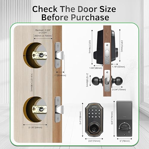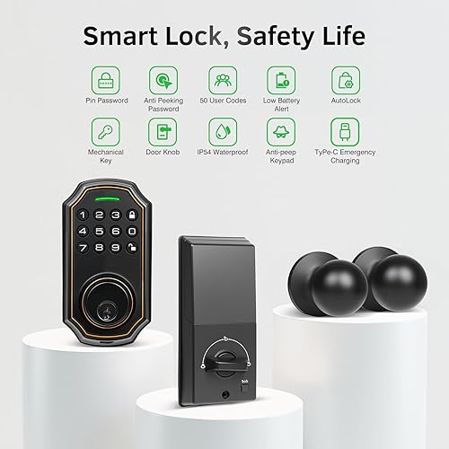 [Keyless Entry Deadbolt with Handle Set]: Our Keypad Door Locks Offer Multiple Unlocking Methods, Including App Access, Fingerprint Recognition, Password Entry, Electronic Key Sharing, And Mechanical Key Override. Smart Fingerprint Door Lock Supports Storing Up To 50 Unique Passwords And 50 Fingerprints, Not Only Can You Set Passwords And One-Time Passwords For Your Family And Friends, But Also You Can View The Unlocking History On The App