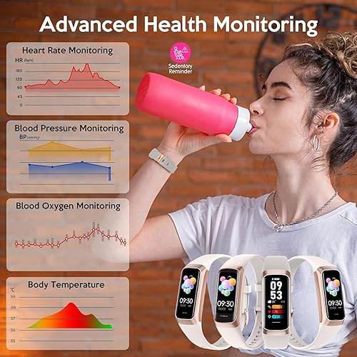 【Comprehensive Health Smart Watch】This activity and fitness tracker watch has multiple functions, including heart rate/blood pressure/oxygen/body temperature/sleep monitoring. You can easily view these real-time health indicators and sleep data (daily, weekly, and monthly) through the "KeepHealth" application. You can turn on 24-hour heart rate tracking, fixed time oxygen and temperature tracking in the application