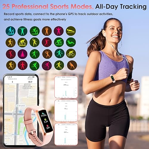 25 Sports Modes & All-Day Activity Tracking: Fitness tracker watch provides 25 sports modes, such as running, cycling, yoga, and rugby; no matter how you exercise, the fitness tracker will adapt to your needs, tracking and recording all-day activities, including steps, distance and calories burned, to help you achieve your fitness goals more effectively; you can use the GPS connected to your phone to track outdoor activities and get accurate distance, speed and route information in the app