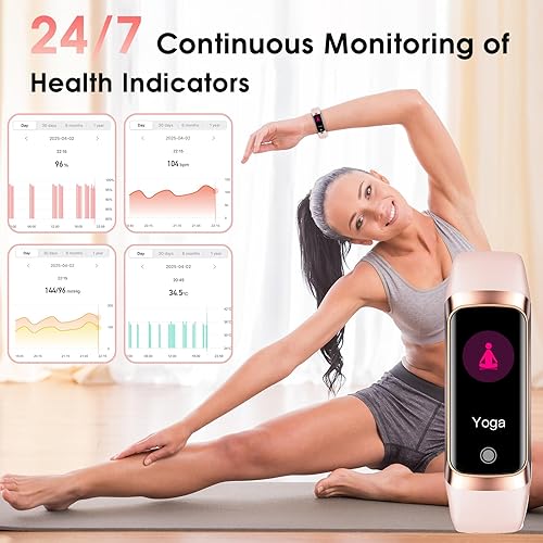 24/7 Health Indicator Monitoring: Fitness tracker supports real-time monitoring of heart rate, blood oxygen, blood pressure, and body temp. You can view these real-time health indicators on your wrist at any time, and view all-day data records in the application to understand your health status around the clock; accurately track sleep status (deep/shallow/awake stage) and analyze your sleep quality, help make adjustments to get better rest, and lead a healthy lifestyle