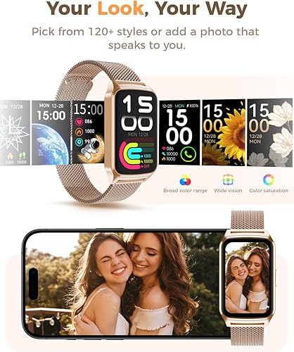 High-Def Display & Customizable Interfaces: The 1.57-inch full-color HD touchscreen on this fitness watch for women ensures sharp visuals and smooth operation. Personalize your device by choosing from over 120 pre-installed watch faces or creating unique photo-based designs, versatile enough to appeal to both women’s fitness watches and broader user preferences