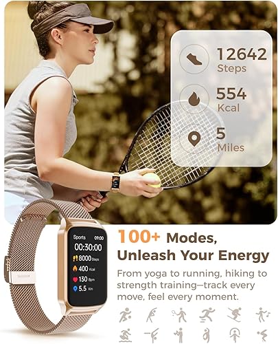 Unlock Advanced Fitness Motivation: Empowered by over 110 sports modes, this fitness tracker smart watch with pedometer tracks key metrics like calories burned, steps, walking and running distance, with IP68 waterproof rating. Define your personal workout goals through the app, monitor your progress, and stay driven to achieve new milestones in your fitness journey