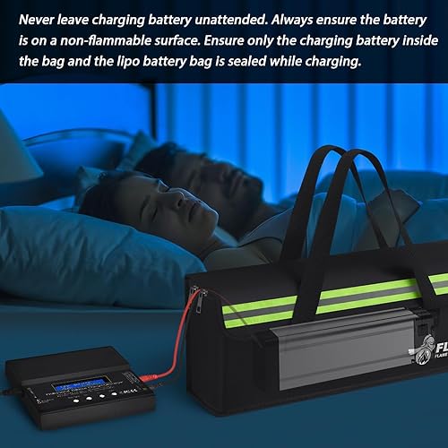 • FLASLD E-Bike Battery Safe Bag Explosionproof - Large Capacity Fireproof Lipo Bag for Ebike Battery Charging and Storage (19.3 x 4.3 x 7in)