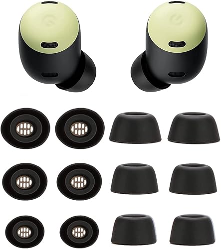 Foam Eartips Compatible with Pixel Buds Pro Earbuds, 6 Pairs S/M/L Sizes Soft Memory Foam Replacement Ear Tips Eartips Earbuds Tips Compatible with Pixel Buds Pro 6 Pairs Black(Black-Foam)