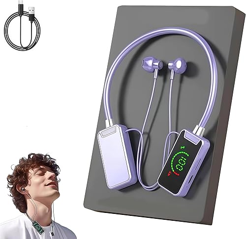 Foihletpath Sports Karaoke Bluetooth Earphones, Wireless Sound Card Live Streaming Earphones, Bluetooth Neck-Hanging Earbud Headset, Come with a Microphone(Blue)(Blue)