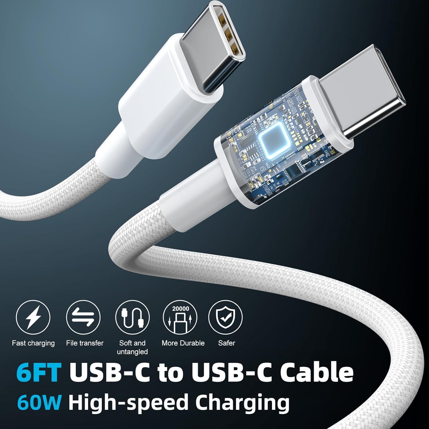 【6FT iPhone 17 Charger Fast Charging】This i Phone USB C charger with 6ft USB c to c fast charger cables equipped with smart chip and high quality copper core free you from the worry of popping up error message, built-in over-voltage protection, features a stable voltage. Tangle-free 6 Feet length is convenient for usage while charging and sync at home/office/travel in bed, hotel rooms, and more.