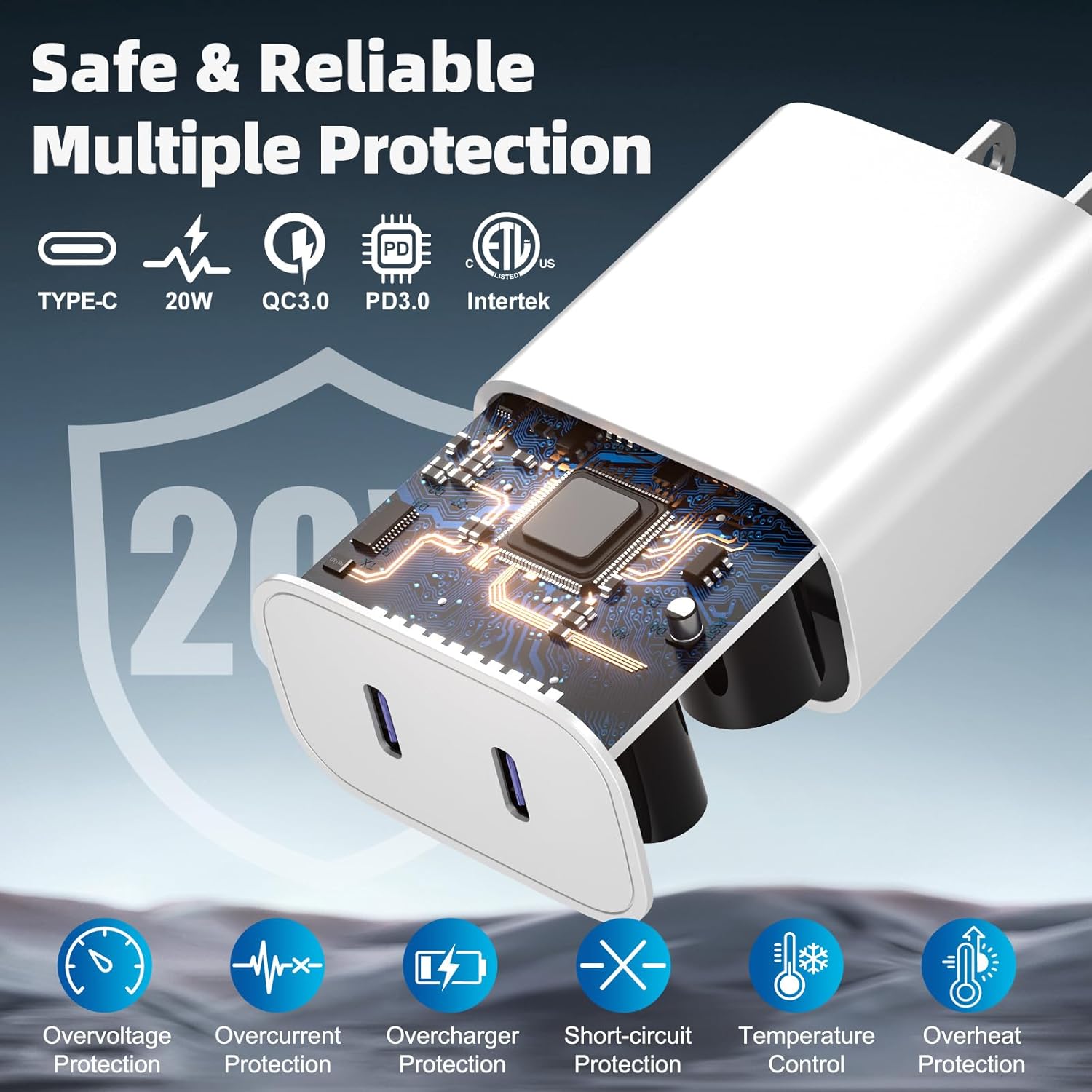 【Charger for iPhone 17 16 15】20W PD adapter wall plug to fast charging for iPhone 17 Pro Max/17 Pro/17/ Air, 16 Pro Max/16 Pro/16/ 16 Plus, for iPhone 15 Pro Max/15 Pro/15, iPad Pro 12.9"/11", iPad Air 5/4, iPad 10, iPad Mini 6; Google Pixel 4/ 4 XL / 3a XL / 3 / XL / 2, Galaxy S8 S9 S10 S20 Plus, Note 10, LG and more USB C device.