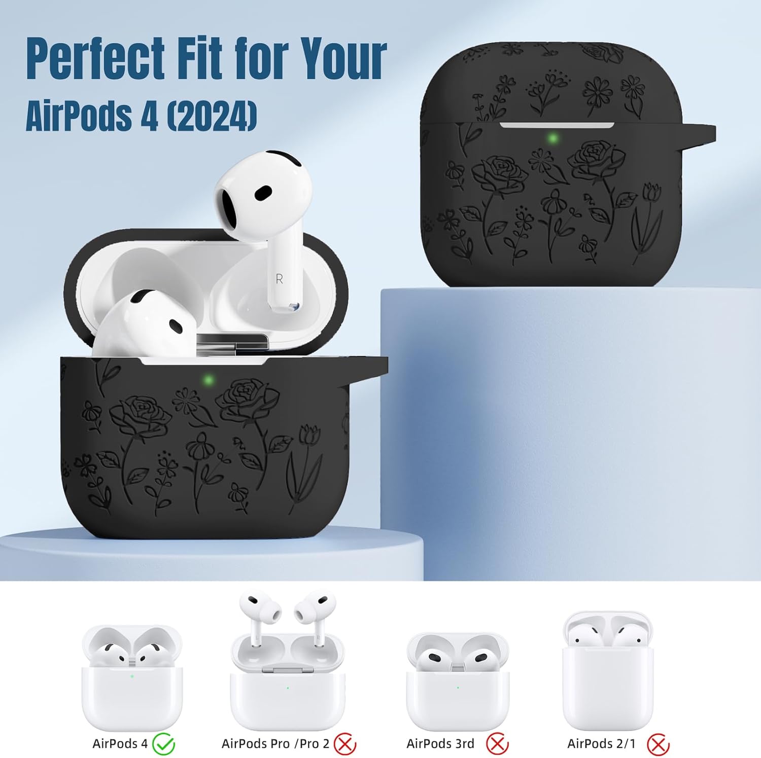 Comment on "for AirPods 4 Case Cover(2024), Cute Flower Engraved Case Compatible with Apple airpods 4,Soft Silicone Full Protective Case for AirPods 4 with Keychain & Cleaner Kit for Women,Men(Lavender)(A-Black)"