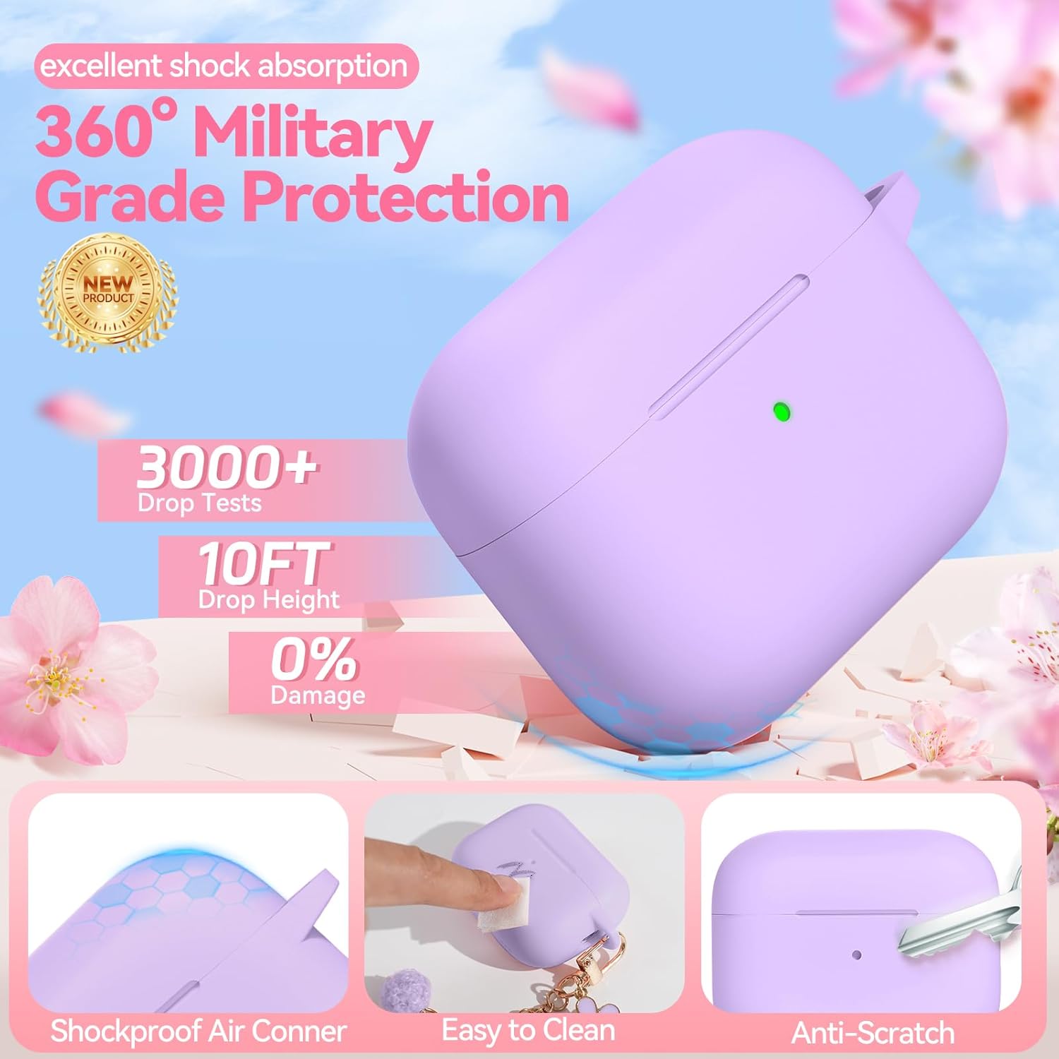 【Skin-Friendly Feel】Made of high elasticity silicone, it's not easy to deform, dirt resistant, washable and easy to clean,recyclable. Enhanced scratch resistance for aflawless look. 360° full protects your airpods against drops and bumps. Make your airpods look like new no matter how long they're used.