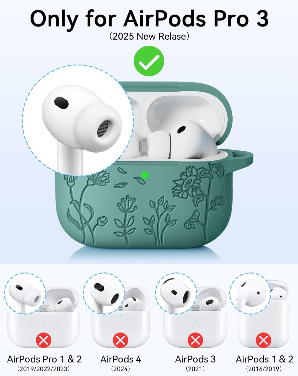Comment on "for AirPods Pro 3 Case 2025 with Cleaner Kit, Cute Turtle Engraved Soft Silicone Protective Case Cover Compatible with Apple AirPods Pro 3rd Generation for Women Men with Keychain, Pine Green(Pine Green-7GL-XRK)"