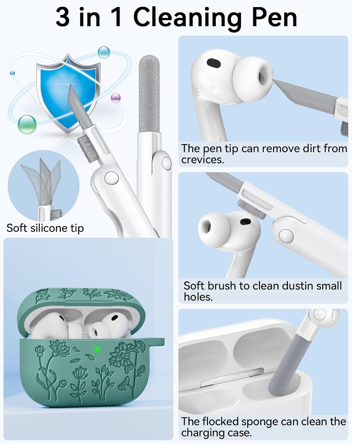 3 in 1 Cleaning Kit: The AirPods Pro 3 Cover comes with a multi-functional cleaning pen that makes it easy to clean dust or stubborn dirt. The cleaning pen comes with smooth up and down buttons that clean your device with the touch of a button.