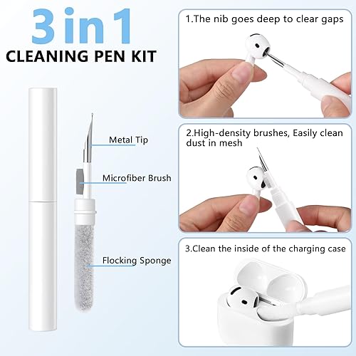 【3 in 1 Cleaning Pen】:This for airpods pro 3 case comes with a 3-in-1 cleaning pen that allows you to easily maintain your earbuds. This versatile tool features a soft brush, a fine tip, and a cleaning sponge to ensure that every corner, from the case to the earbud mesh, stays dust-free and spotless. Keep your Pods looking and performing like new