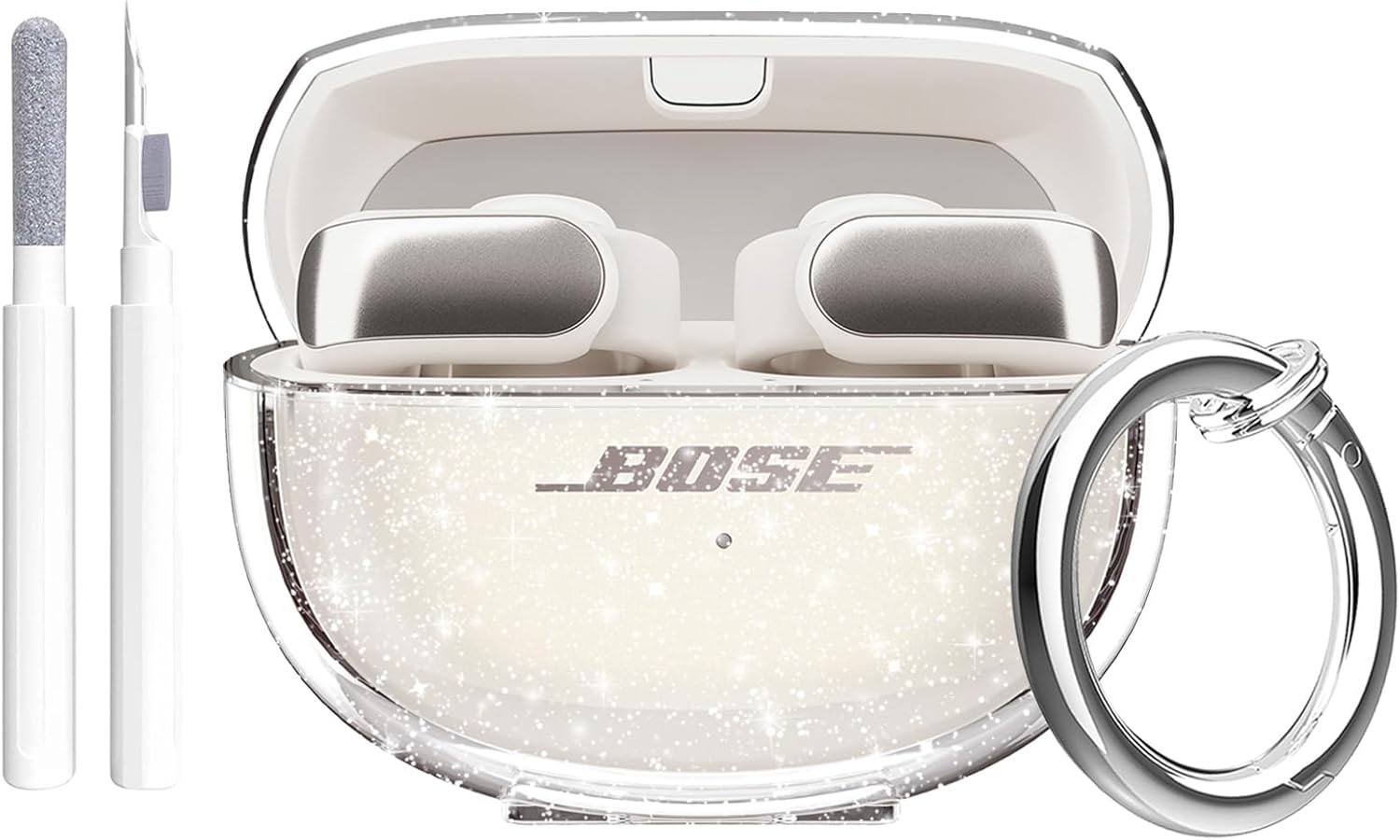 Great Gift Choice- High clear with sparkle blingbling glitter style, this clear glitter Bose Ultra Open case cover can make your Airpods to be more unqiue, fashionable and eye-catching.perfect decoration for your Bose Open Earbuds and definitely a good gift choice for women,girls, friends,families in festivals,like Valentine's Day,Mother Day, Christmas,New Year,Holween,Birthday,etc.