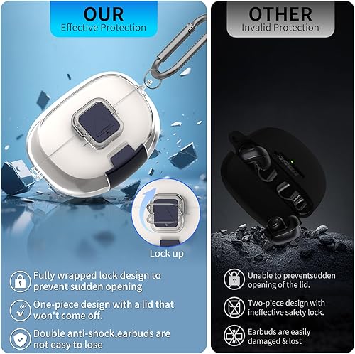 【Reliable Secure Lock】✔One-piece design keeps the top always connected to the bottom. The front has a safety buckle and a safety lock, once locked, the cover can always remain closed. Even if it drops, you don't have to worry about the bose earbuds case popping out and getting lost