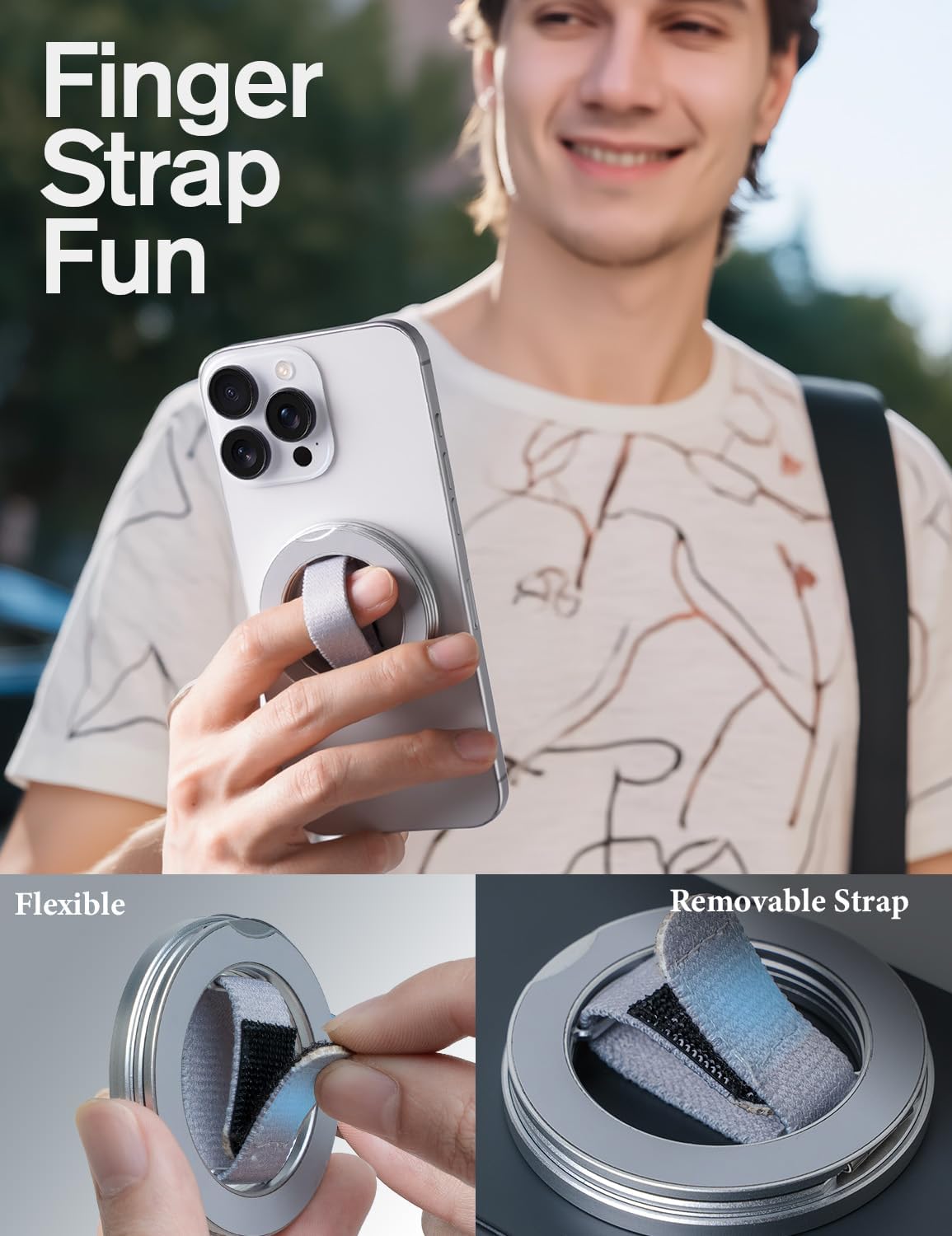 Comment on "for Dual-Sided Magnetic Phone Ring Holder for MagSafe, 360°Rotation Stand with Finger Strap, Removable Gym Phone Grip for iPhone 16/15/14/13/12, Compatible with MagSafe Car Mount, Sliver"