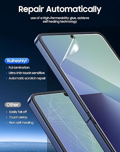✅【Say Goodbye To Creases, Flaking and Fingerprints】 The screen protector (inner screen only) is made of seventh-generation AF flexible TPU material, which has been tested tens of thousands of folds to confirm its crease resistance and durability. The upgraded material enhances tensile and wear resistance, allowing the protective film to complete self-repair in a very short time. It won't flake or wrinkle even in extreme environments, and the AF oil-proof coating lets fingerprints say goodbye to greasy residue on the surface, so your screen always looks brand new.