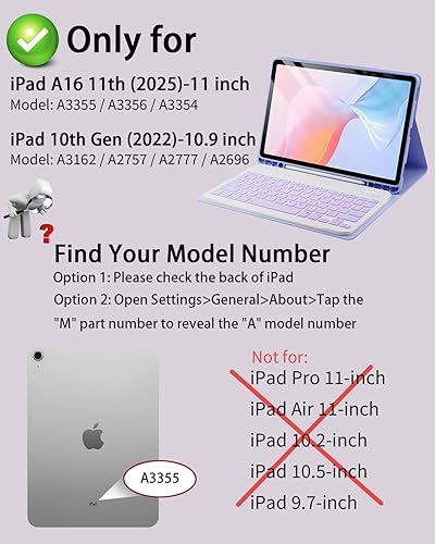 【Model compatibility】This keyboard case compatible with iPad 9th / 8th / 7th Generation 10.2 inch 2021/2020/2019 (Model Number:A2602/A2603/A2604/A2605/A2430/A2270/A2428/A2429/A2197/A2198/A2200), compatible with iPad Air 3rd Generation 2019 (Model Number:A2154/A2152/A2153/A2123), compatible with iPad Pro 10.5 inch 2017 (Model Number:A1701 /A1709 /A1852). Not compatible with other models. Please check the model number starting with "A" on the back of your tablet before purchasing